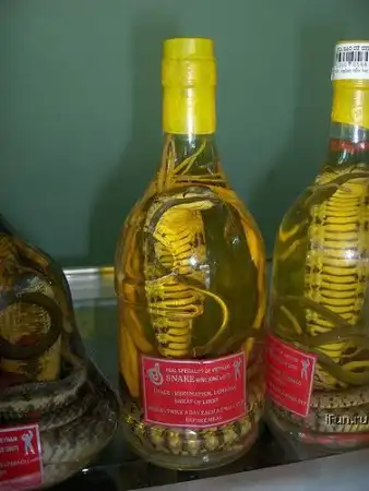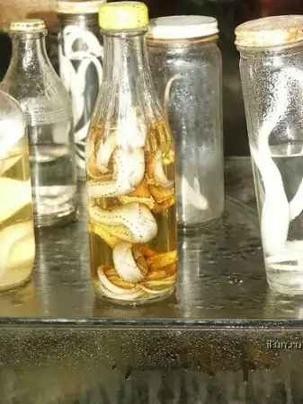 Одному хорошему знакомому дяденьке подарили недавно на день рожденья какую-то очень крутую восточную настойку.. Там были всякие травки-коренья, и среди прочего.. целая змея) Я бы такое пить не осмелилась))