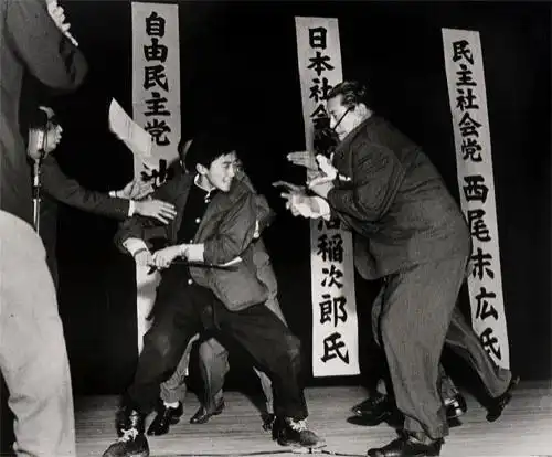 12 октября 1960 года в Токио. Студент, активист правых сил убивает председателя социалистической партии Инижиро Асанумо. Автор - Ясуши Нагао.