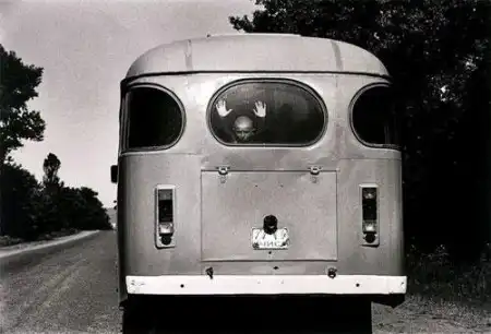 Май 1995. Чечня. Мальчик выглядывает из автобуса, загруженного людьми, бегущими в Грозный из эпицентра боевых действий рядом с Шали...Снимок сделан Лусианом Перкинсом из газеты "Вашингтон Пост"...
