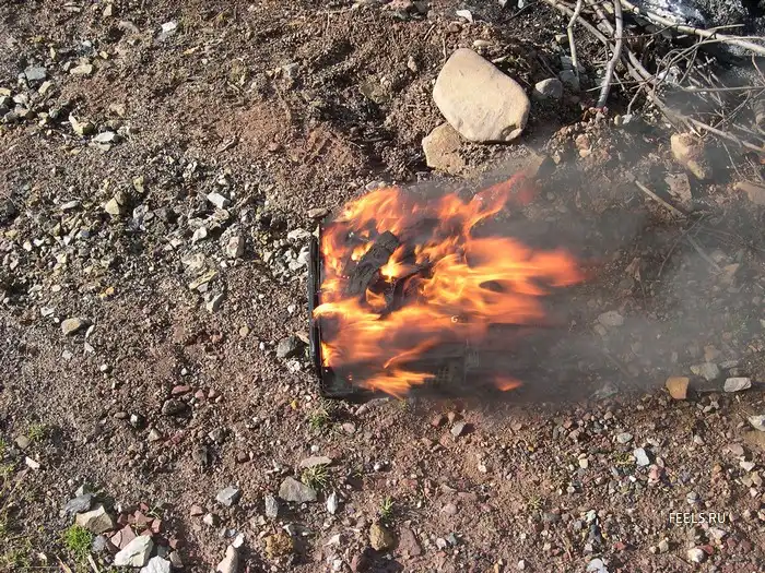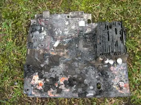 Кого то уж больно разазлила эта приставка! Нервы не выдержали! Вот и сожгли, а потом допинали))))