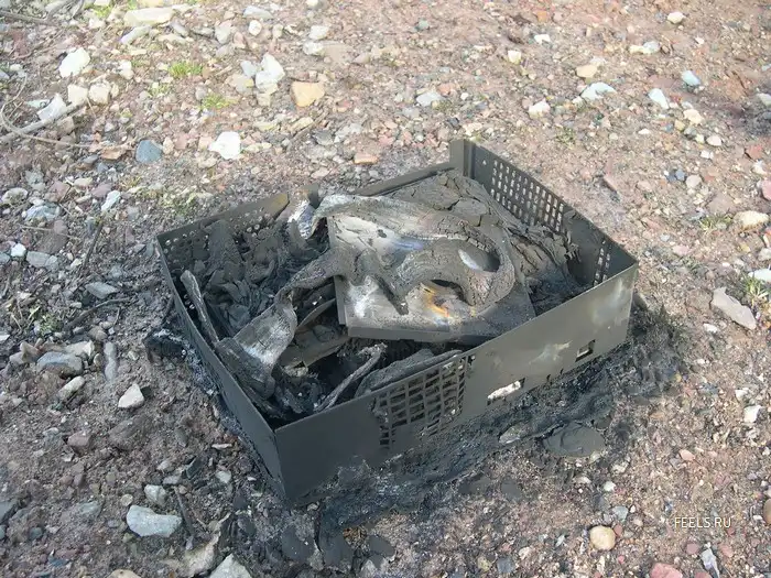 Машинка-то неисправна была.. biggrin Погорела видно от переапруги при грозе, хрен ли с ней делать оставалось? Хоть развлекуху сотворить.. типа ритуальное сожжение.. У меня также комп сгорел от перенапряжения - в аккурат чрезмерно игрушкой увлёкся.. cool Хотя крпус мог бы и пригодиться для чего-то дельного..