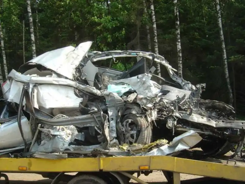 Как известно, поток в это время очень оживленный, дачники спешат домой, и, в результате, автомобиль буквально разнесло на части.