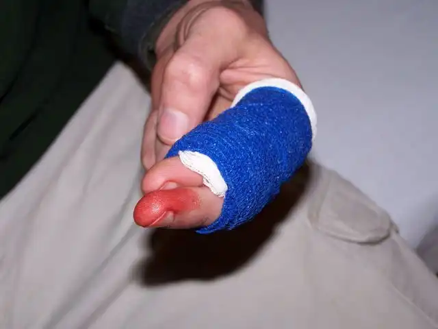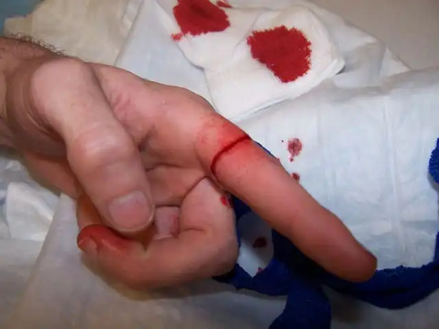ему даже палец не полностью отрезало, так, наполовину. у меня таким же образом нога была рассечена и ничё живой до сих пор. парню знакомому вообще голову железным уголком пробивали, ничё, тоже живой, хотя там жесче было чем это..