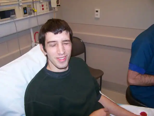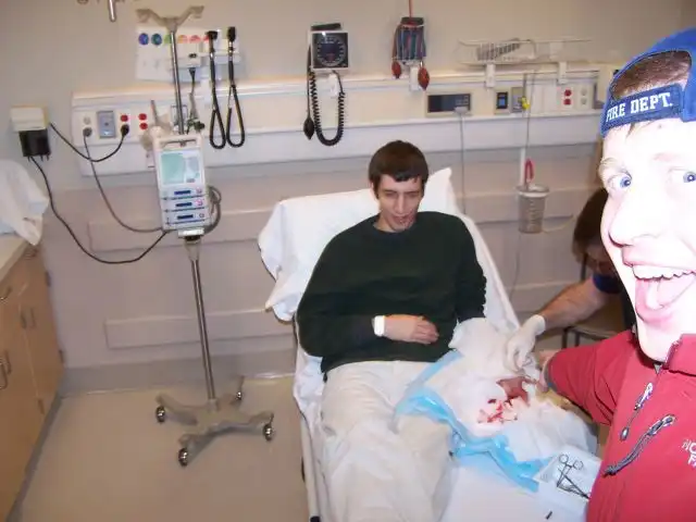А парняга то весельчак!Видно что ему нравиться!Он в следующий раз сам се ногу отпилит,чтоб снова пришивали!