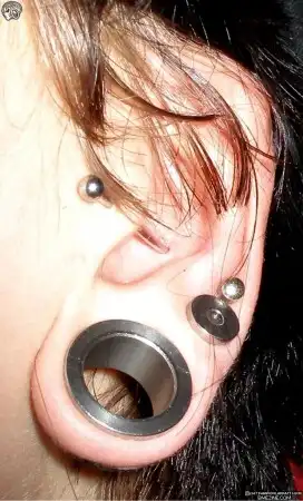 Сердечко в ухе,господи какая прелесть,ну надаж такими идиотами родится,они ж себя инвалидами делают....да и к тому же,вот станут они бабками и дедками и чо,будут вот так ходить ?Оо извращенцы