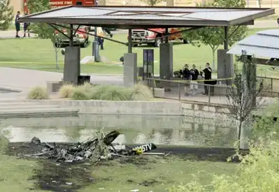 Обломки взорвавшихся при столкновении вертолётов упали на лужайку городского парка.