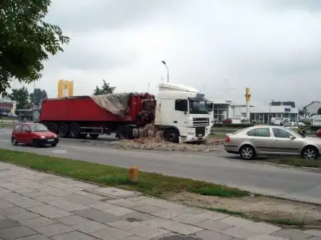 ...и перевозимый груз вывалился из кузова. Это были кишки животных, не для слабонервных. Действие происходило в Польше.