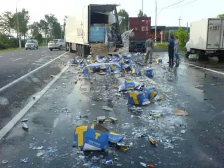 Водила разбил груз пива! :hmm: :crybaby: :ranting: