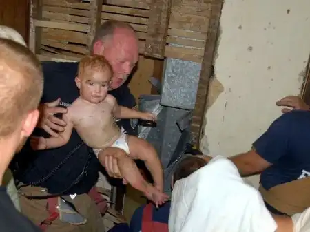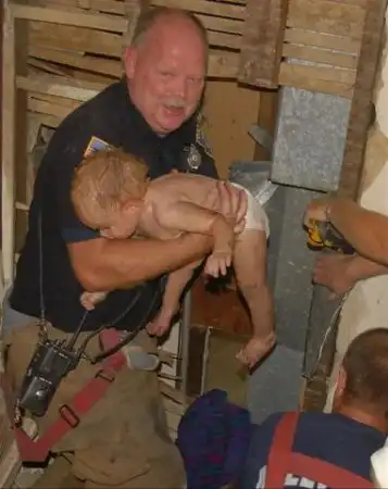 18-и месячный Патрик играл на втором этаже в спальной и нечаянно провалился в воздуховод проходящий в стене. Ребенок провалился на 3 метра вниз и застрял в трубе. По вызову родителей прибыли пожарные, которые благополучно спасли дитя. Родители все время нахождения ребенка за стеной очень переживали за него, но все обошлось благополучно.