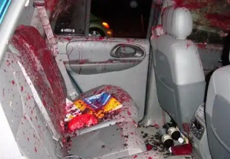 Какая же скорость была у авто, если весь салон в оленьих потрохах? Сочувствую хозяину, отмывать машину за*бется...