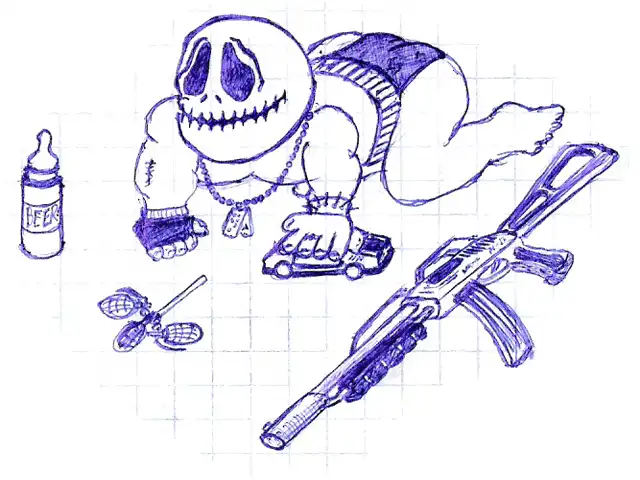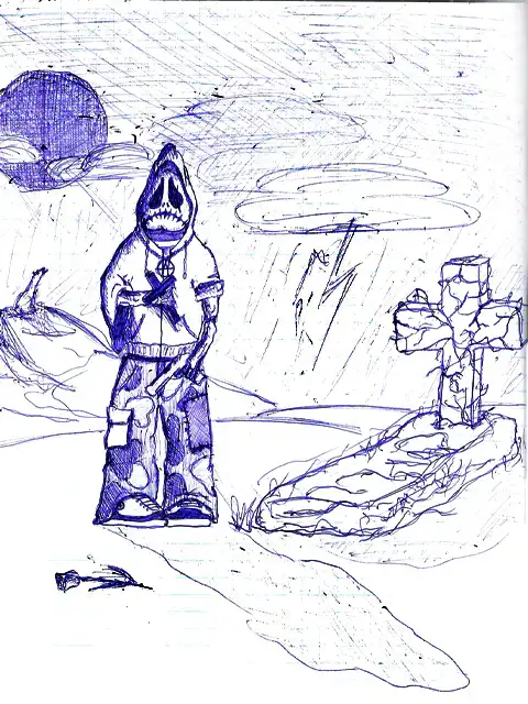 У меня в школе тоже тетради подобным были изрисована. И тоже с черепами и прочей мутью)