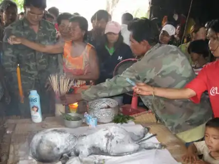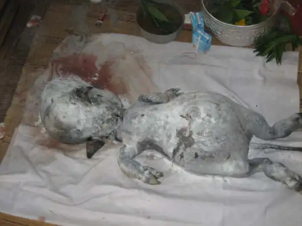 Козленок-мутант, после жертвоприношения, готовят к обеду yes death