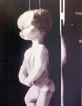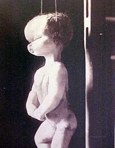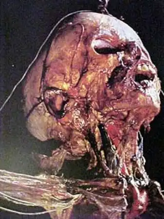 Мумифицированная голова ребенка, с проявленными венами и артериями...