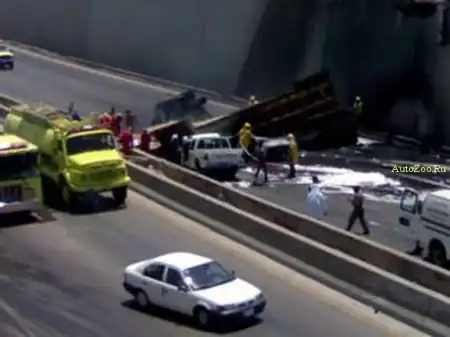 Наверно в ограждение мощно врезался и центр тяжести переместился =/