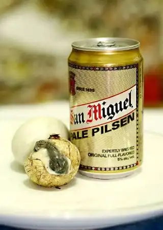 Это самая вкусняшка. Наполовину высиженное яйцо. Отковыриваешь скорлупу и кушаешь цыпленочка. Главное клюв не слопать. А на косточки можно внимание не обращать. Они еще не очень твердые и приятно хрустят на зубах )))