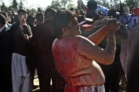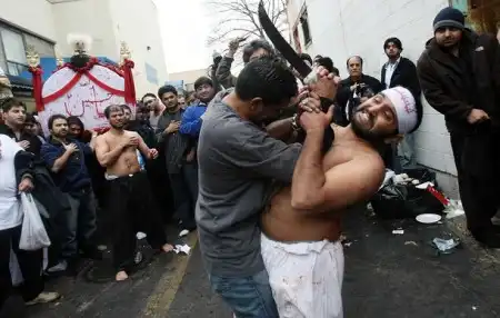 Пока православные ортодоксы служили в церквях, купались в прорубях и стояли в очередях за святой водой в крещенье, шииты отмечали свой праздник Ашура - день поминовения имама Хусейна, убитого в Кербеле в 680 году. Пишут, что имама убивали жестоко, с нанесением большого количества телесных повреждений, поэтому шииты так немилосердны к себе в этот день.