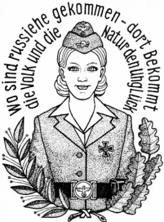 Эстонская татуировка. Выполнена на животе. Надпись: «Там, куда пришли русские, народ в беде и природа погибает» (нем.). Скопирована в морге Обуховской больницы в 1965 году. Живот.