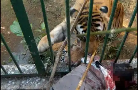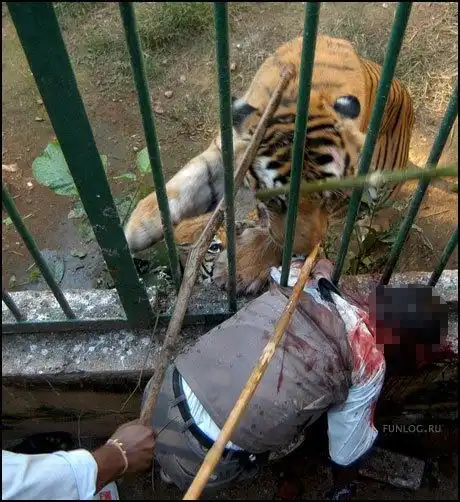 Эта на кскоко близко надо было подойти,чтобы тигр в клетке смог достать его и погрызть!Мужик-тупица!А у тигра животный инстинкт сыграл!