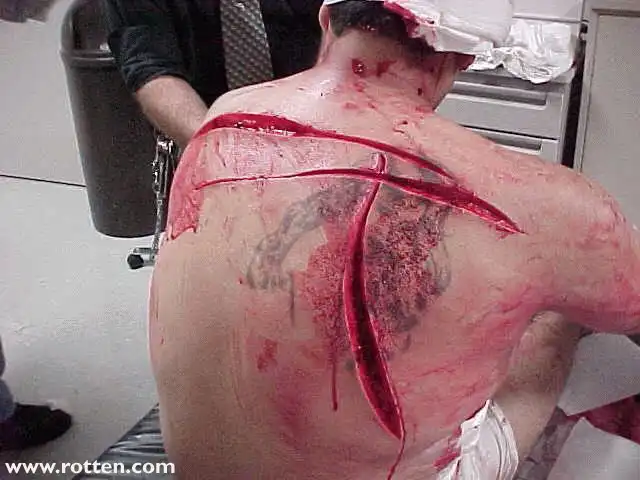 не думала, что в среднестатистическом человеке так много мясца на костях... судя по последней фотке, глубина раны должна таки достигать ребер! ан нет))