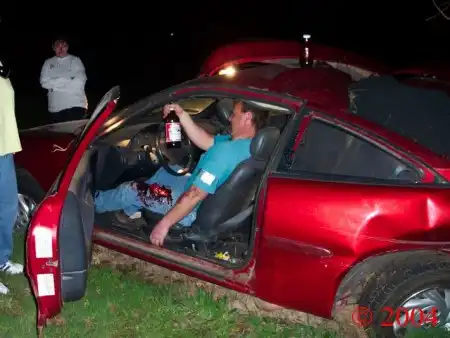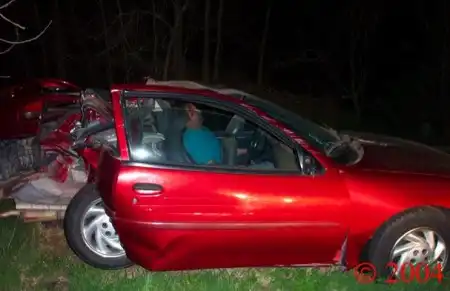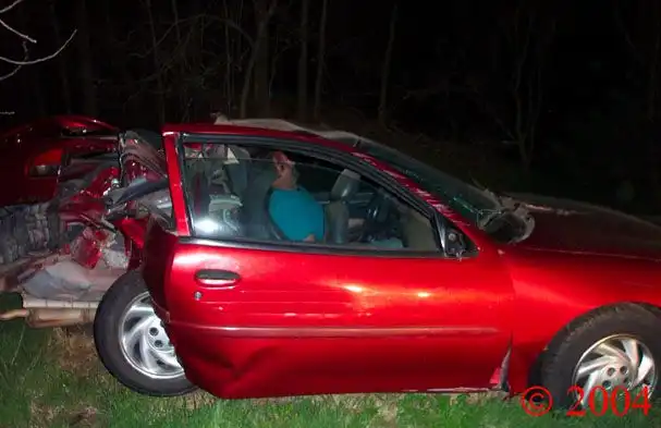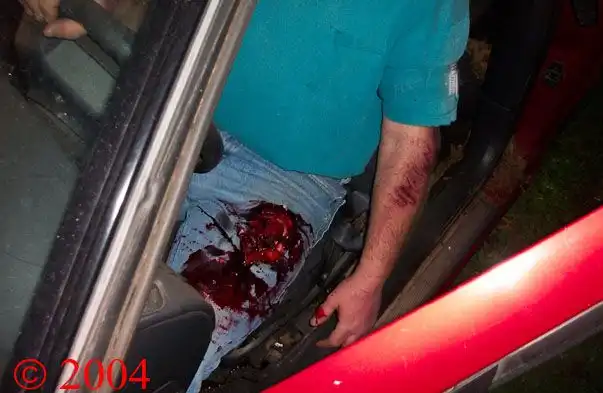 мне вот интересно, чем ему ногу поранило???? дверь цела, лобовое стекло тоже... с его стороны вообще повреждении нет... странно