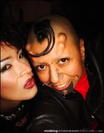 охахаха у нас в городе даже(по собственному примеру)человек с парой проколов на лице вызывает нездоровое внимание..идёшь спокойно по улице,смотришь на проходящий мимо автобус,а там из окон на тебя все пялятся,аж шеи выворачивают просто П*ДЦ death а уж если труёвый фрик по городу проидёт ...ууу..