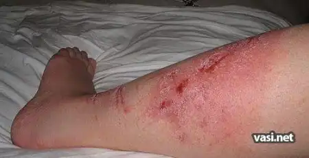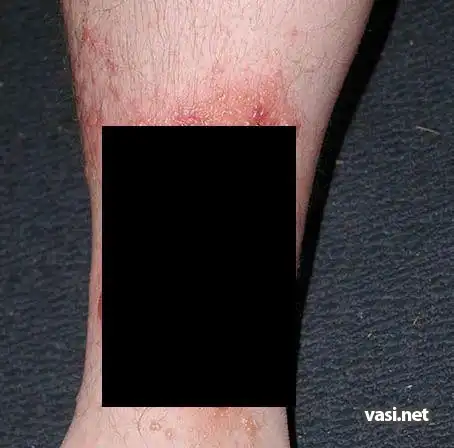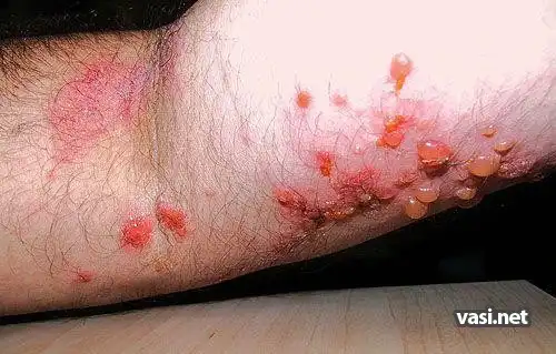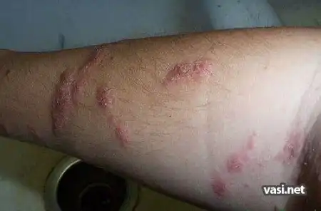 сначала подумал саркома капоши. потом вспомнил эти фотки. на каком то медицинском англоязычном сайте видел. это поражение кожи полученное в результате контакта с ядовитым плющем.