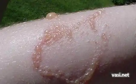после ожога спустя неделю происходит гноение...а по началу пузыри !