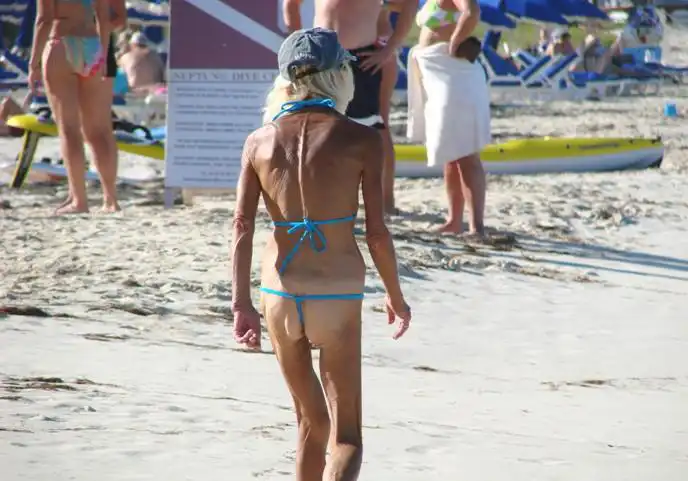 бл*ть он скорей всего ввиду имел то что ето не тру фото а к башке какойнить дефки приделали ето ТЕЛО бабульки,и темболее человек балеющий анорексией врятли бы захотел пойте в таком одеяние куданить темболее на пляж