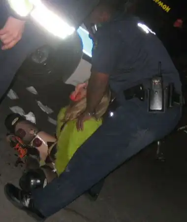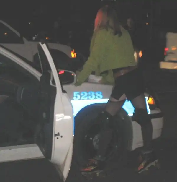 Он приказал ей положить руки на капот, пока он будет выписывать штраф. Что она и сделала.