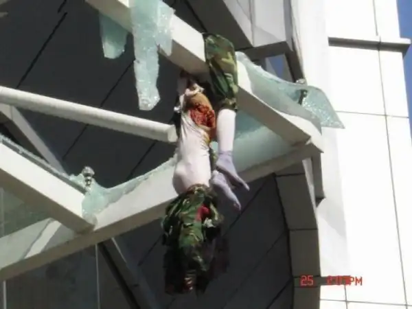 порвалось местами,висит так как мяско...вот вам и эффектная смерть-полноейшее г*ндонство в реале