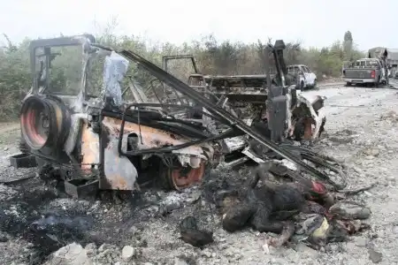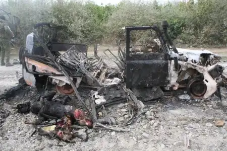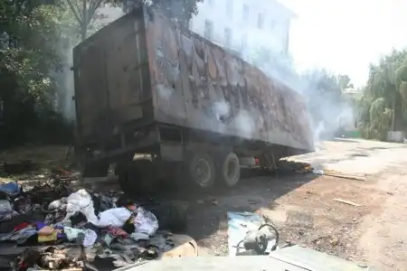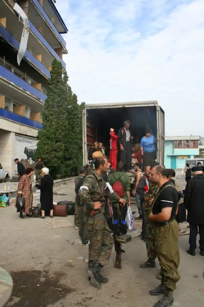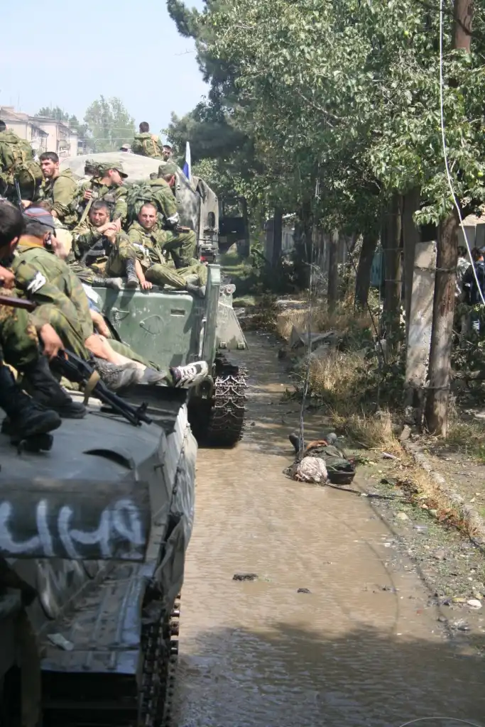 В городе продолжают валяться тела 20-30 убитых грузин и они начинают разлагаться на жаре. Трупы уже сжигают кое-где.