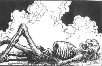 На приведенных выше рисунках, показанна подобная казнь. Палач окатил связанную женщину концентрированной кислотой, полюбовавшись, как едкая жидкость сжигает тело жертвы, он уходит, оставив на полу лишь жалкие ошметки тела.