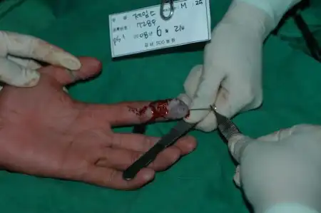 интересно и куда это он так удачно палец свой пиханул? biggrin а врачи молодцы! почти из нечего палец собрали)