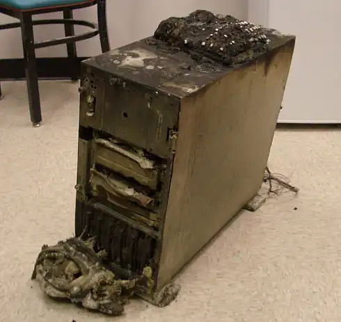 вот вам и ответ - что за люди эксплуатируют такую технику! Кстати, у меня помню на блоке питания розетка плавилась! Но там не так страшно было как тут!