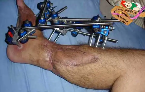 Упал с мотоцикла и сломал ногу.