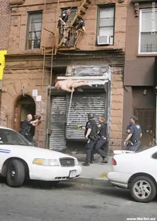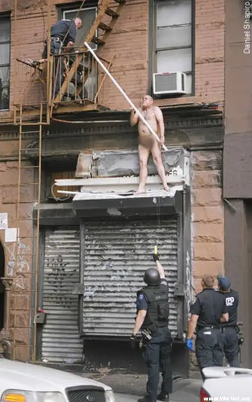 Приехавшая на такую веселую тусовку полиция попросила его слезть.