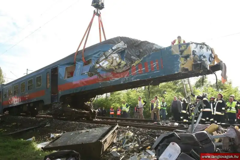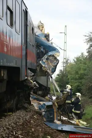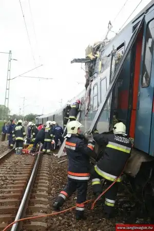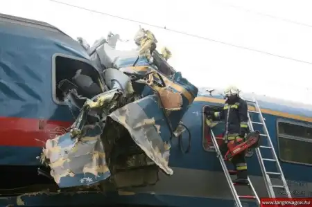 Столкновение произошло в 50 километрах к востоку от Будапешта. Предположительно, один из поездов двигался слишком медленно, и потому он столкнулся со следовавшим за ним составом.