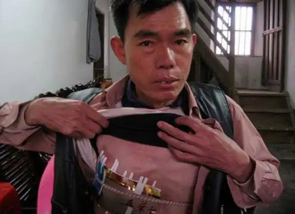 Дело в том, что у 51-летнего Рао Jiacang, 10 лет назад вырезали часть легких из-за курения, но швы расползлись. С тех пор к докторам он не ходил. Вот так и живет бедянга с дырой, которую залепляет обычным пакетом и скотчем. Вот жесть!