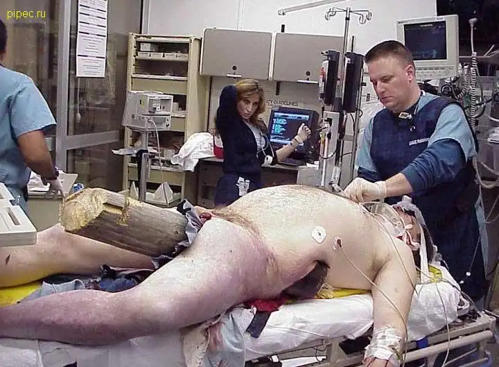 Как же могло бревно пройти почти через все тело wassat