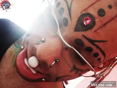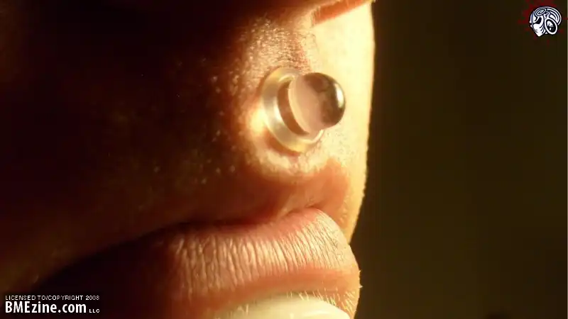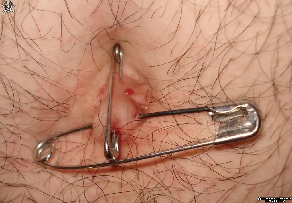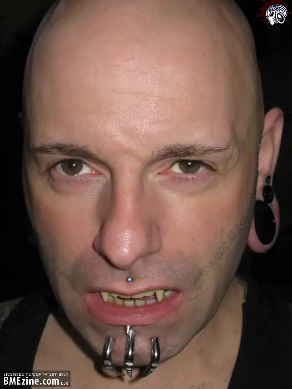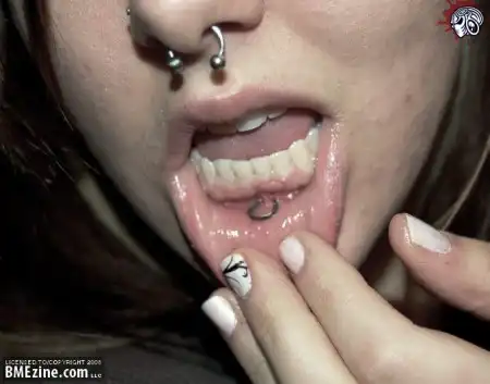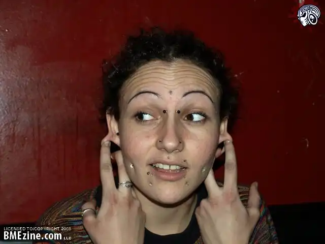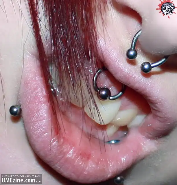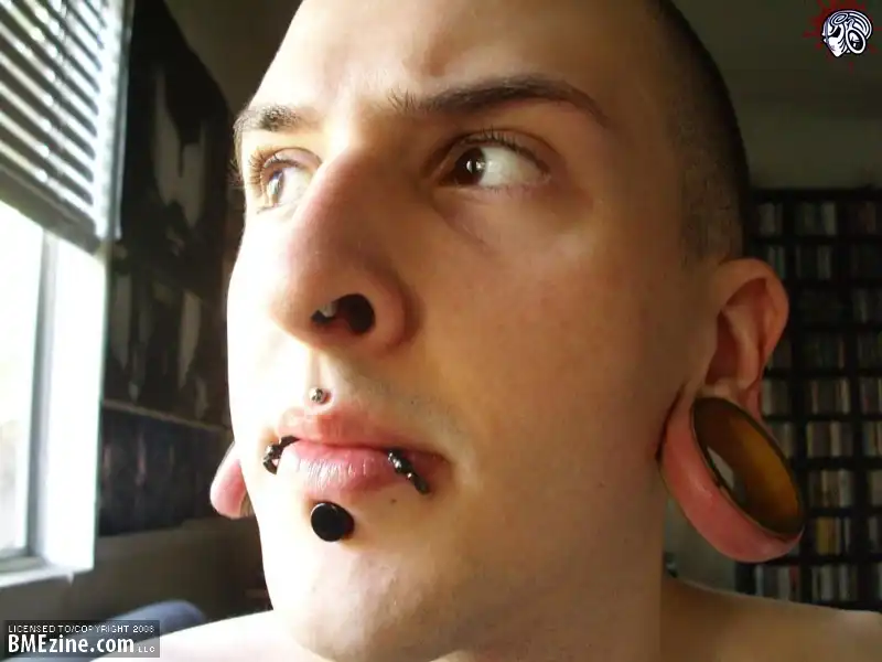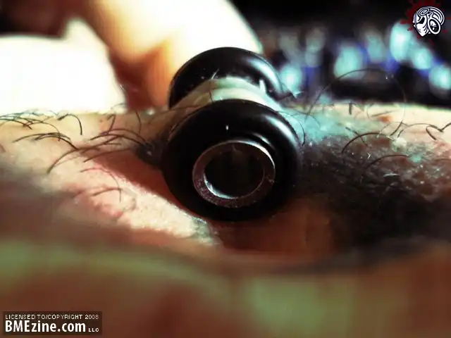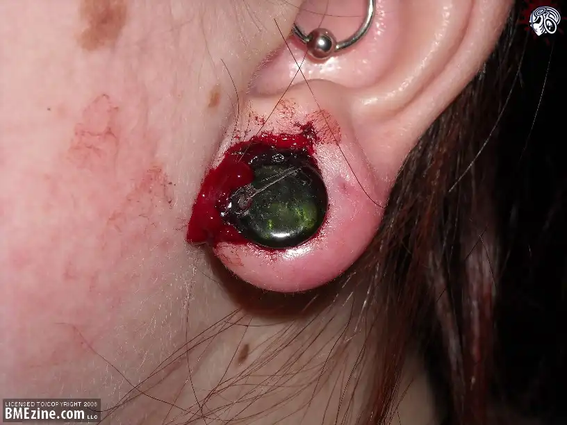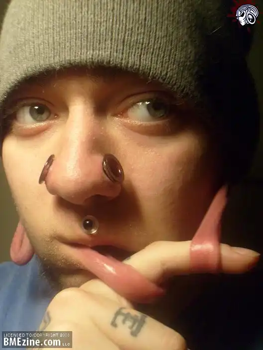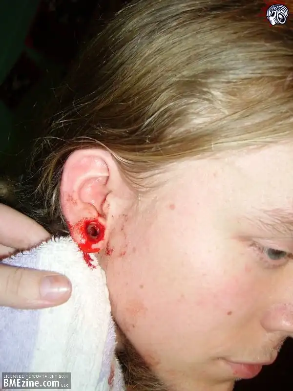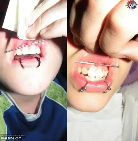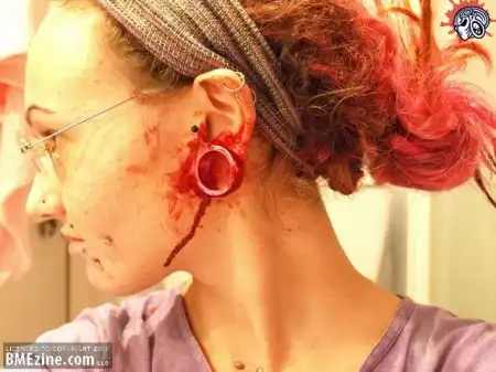 обычный пирсинг, между прочим это совсем не больно,крови там примазали, что б вас напугать)) а людям что нравятся , то они и делают. жесть только с тонелями)