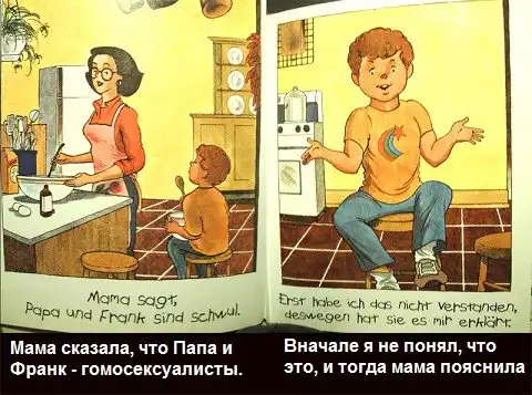 Об этом чудном издании известно, что главной его целью является свети к минимуму возможные психические травмы детей, если кто-то из их родителей вступил в однополый брак.