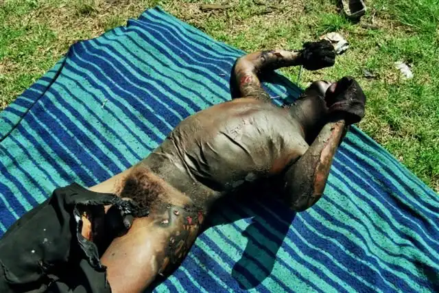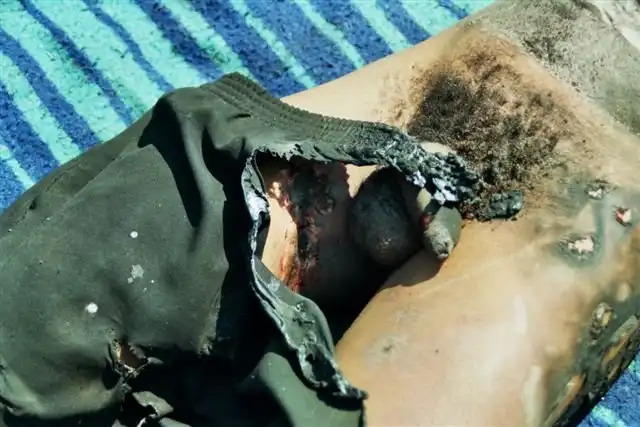ТупитЦо, хотя о мертвых плохо нельзя... Хз...и посемуто мне кажеться, это футболка сплавилась и превратилась в исскуственную кожу ???