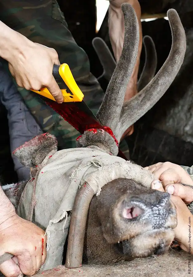 Хотя процедура и выглядит ужасно, боль олени переносят не сильную, так как нервные окончания имеются лишь в коже, покрывающей рога.