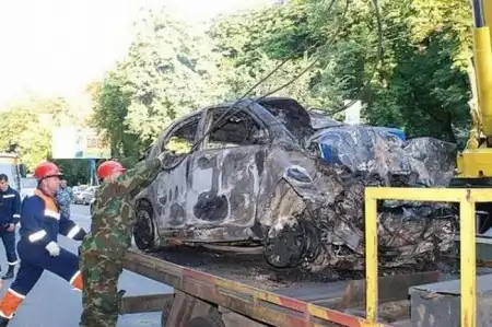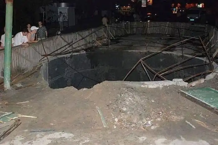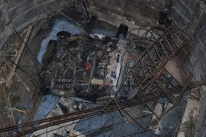 Это жуткое происшествие случилось ночью 28 июня в Киеве, на улице Воровского. Автомобиль Cherу Jaggi на бешенной скорости влетел в шахту недостроенного водопроводного коллектора. Водитель не заметил ни ограждения, ни фонарей, ни предупреждающих дорожных знаков. Автомобиль снес деревянный забор, рухнул в 16-метровую шахту, буквально нанизался на штыри арматуры и моментально загорелся. У находящихся в машине мужчины и женщины не было никаких шансов выжить.