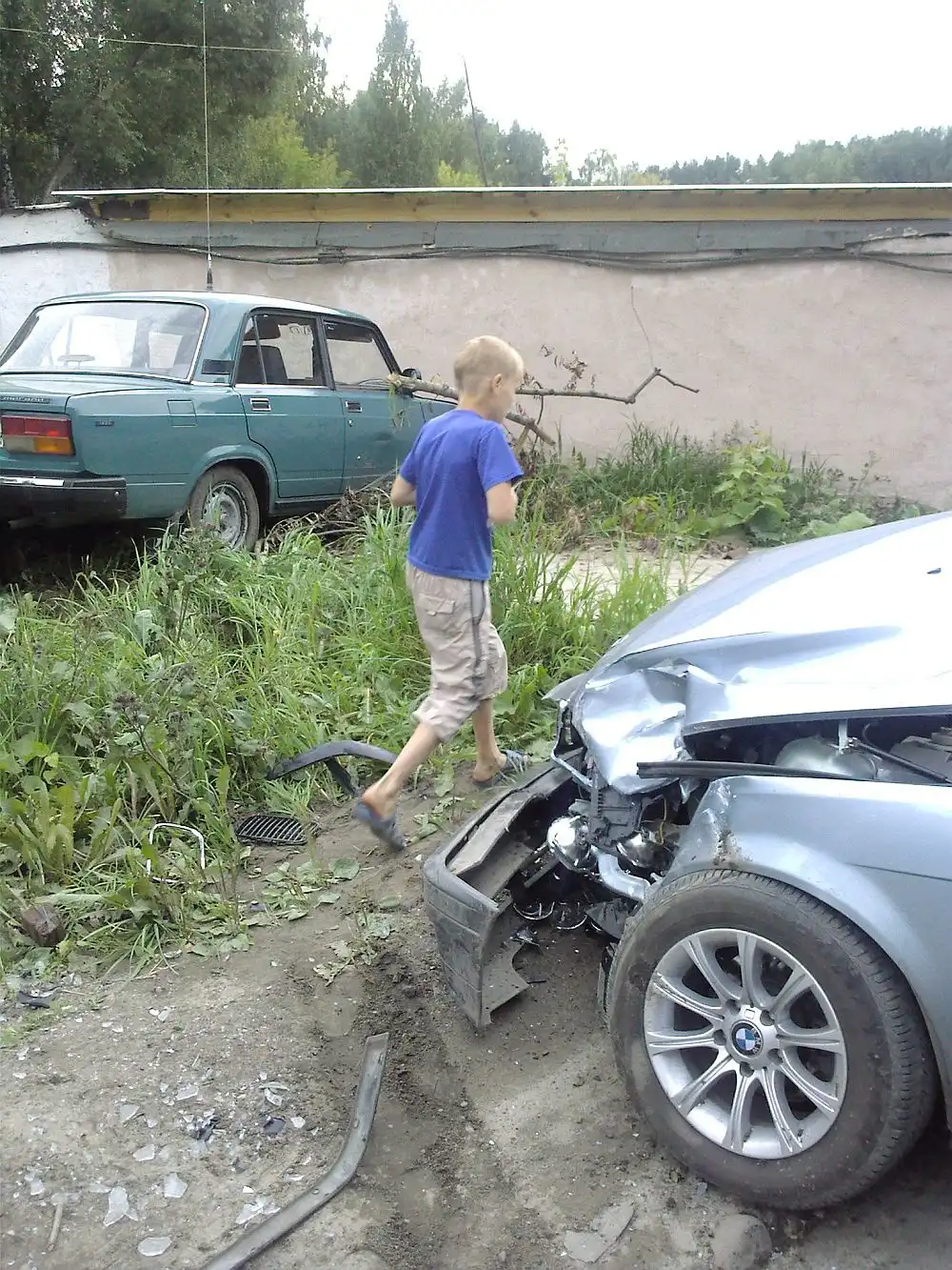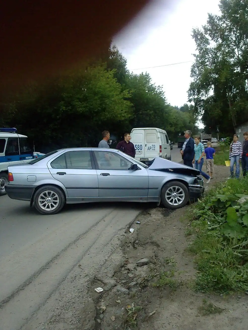 Авария 14.08.2009 г около 19 часов. Со слов очевидчев, машинка зеленая выскочила из дворов на бешеной скорости и виля по дороге помчалась вдаль.... Бэха пыталась уйти от столкновения, остановилась, но наша русская модель снесла её с дороги и сама ушла в стену гаража... Также со слов очевидцев, машиной управлял подросток, который сразу сбежал...