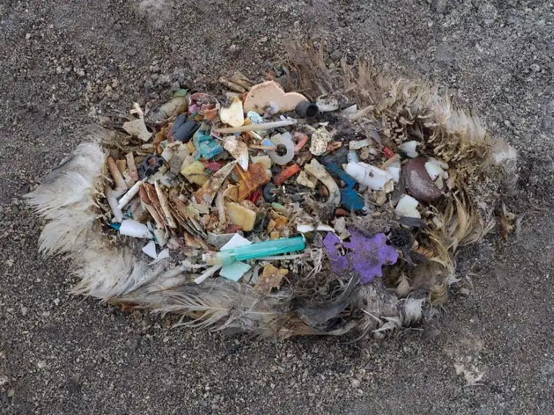 Эти фотографии птенцов альбатросов были сделаны на атолле Мидуэй. Крошечный участок в центре северной части Тихого океана. Не понятно, почему птицы ели это...