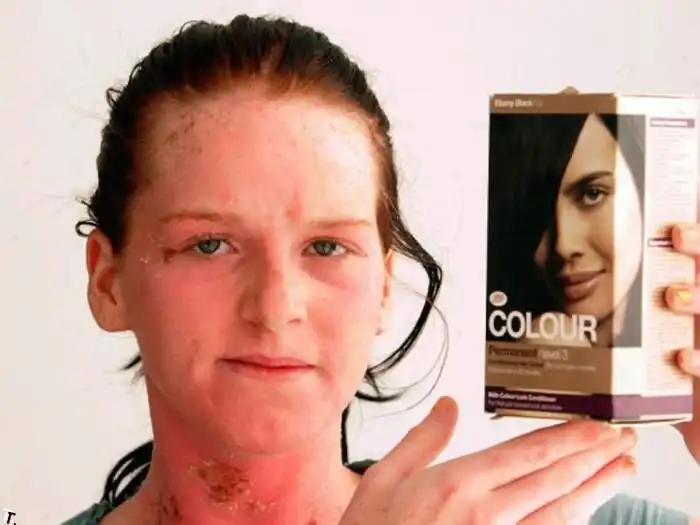 Подозрительно как то всё. Корни волос не прокрашены и почему реакция пошла на лицо непонятно