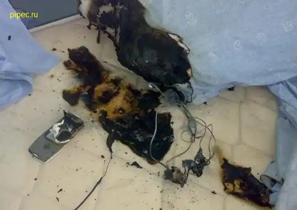 да он просто обоссался в постели а там мобильник вот и замкнуло все просто haha