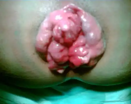 геморрой-выпадение кишки наружу..она потом заходит обратно-на легкой стадии, или не заходит-на запущеной)