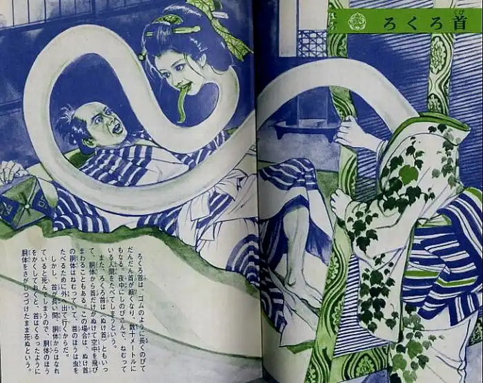 Женцина-паук и женщина с длиной шеей - это тоже из японской мифологии.